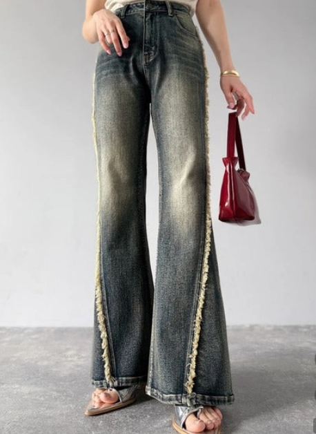 とにかく美脚!サイドフリンジ使い    ヴィンテージ風デニムフレアパンツ      ¥3,998(税込)