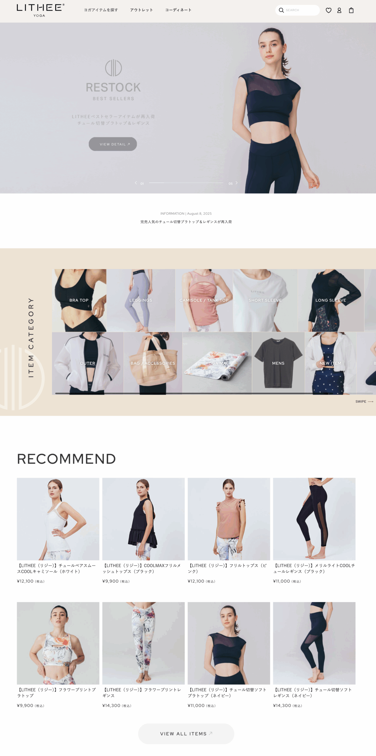【PR】LITHEE (リジー) 詳細はこちらをクリック モードで上質感あるヨガウェアのご紹介です!ヨガウェアを主軸にランニング・ゴルフ・フィットネス水着を含む、 多数のレディーススポーツウェアを販売しています。 ☆平日9時までのご注文なら当日出荷! ☆セール品以外は返品交換OKです。 ☆アウトレットコーナーあり 旧シーズンモデルをアウトレット価格にてご用意! 豊富な品揃えでお得にお買い求めいただけます。★オススメ商品★チュール切替ソフトブラトップ(ネイビー) 11,000円(税込)ソフトでなめらかな質感肩周りをチュールで切り替えたデザインブラトップ。透け感がフェミニンな印象の1枚です。柔らかくソフトなストレッチ素材で締め付け感が少なくなめらかな着心地です。チュール切替ソフトレギンス(ネイビー)14,300円(税込)サイドをチュールで切り替えたソフトレギンス。柔らかなストレッチ素材で締め付け感が少なく、なめらかな着心地です。 商材名 LITHEE(リジー)運営者 N※当サイトはアフィリエイトプログラムを利用し宣伝目的で作成しております。
